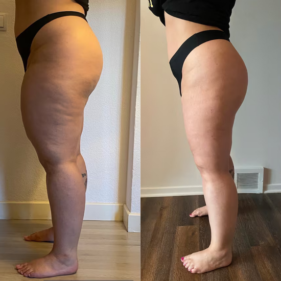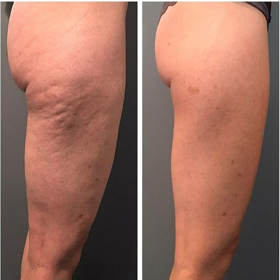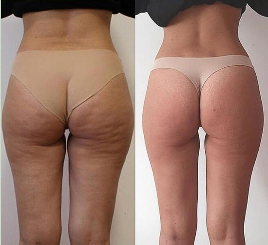 Réduit la cellulite et les vergetures tout en améliorant visiblement la texture de la peau.